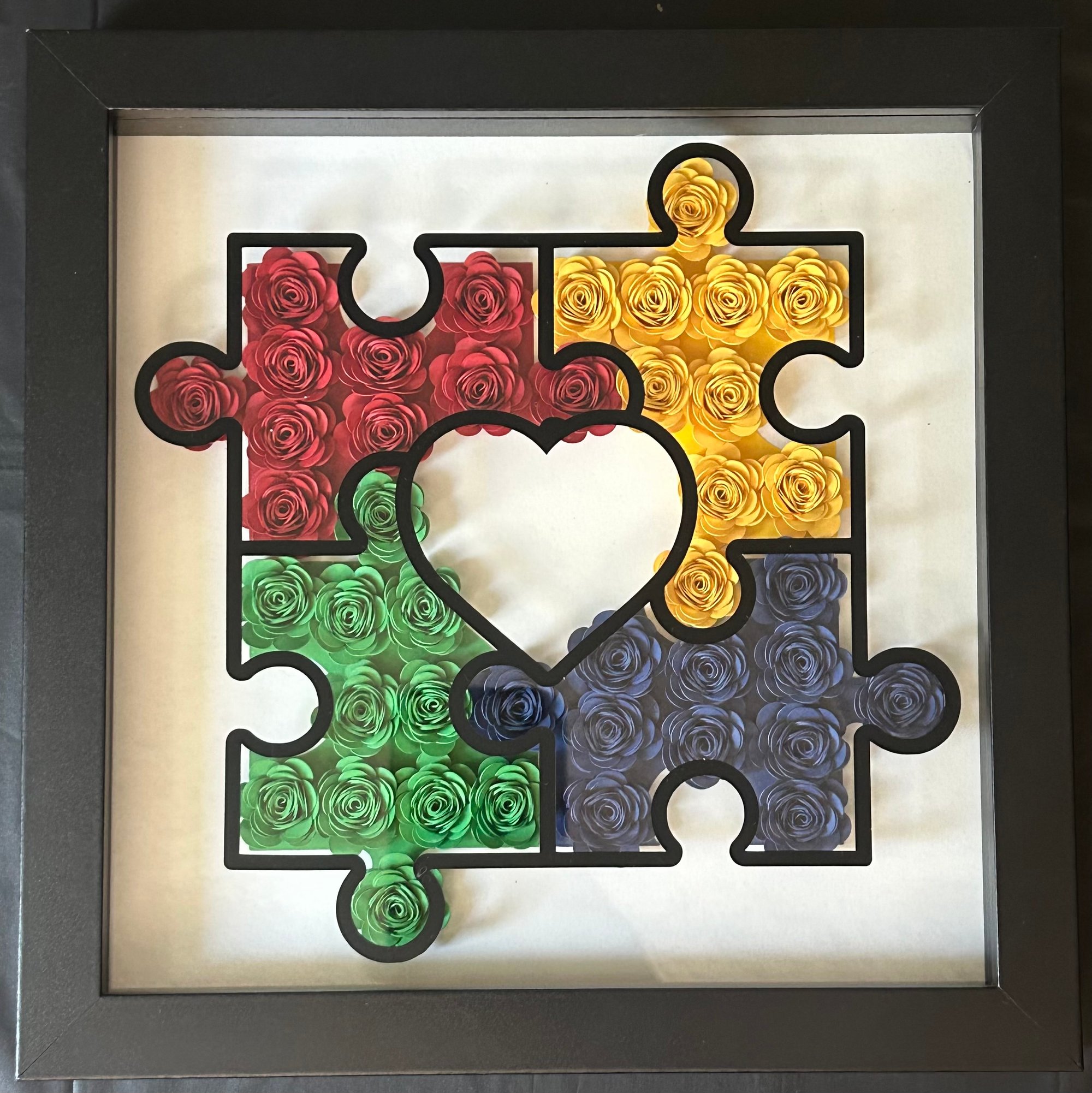White Background with Red / Yellow / Blue / Green Handmade Paper Flowers